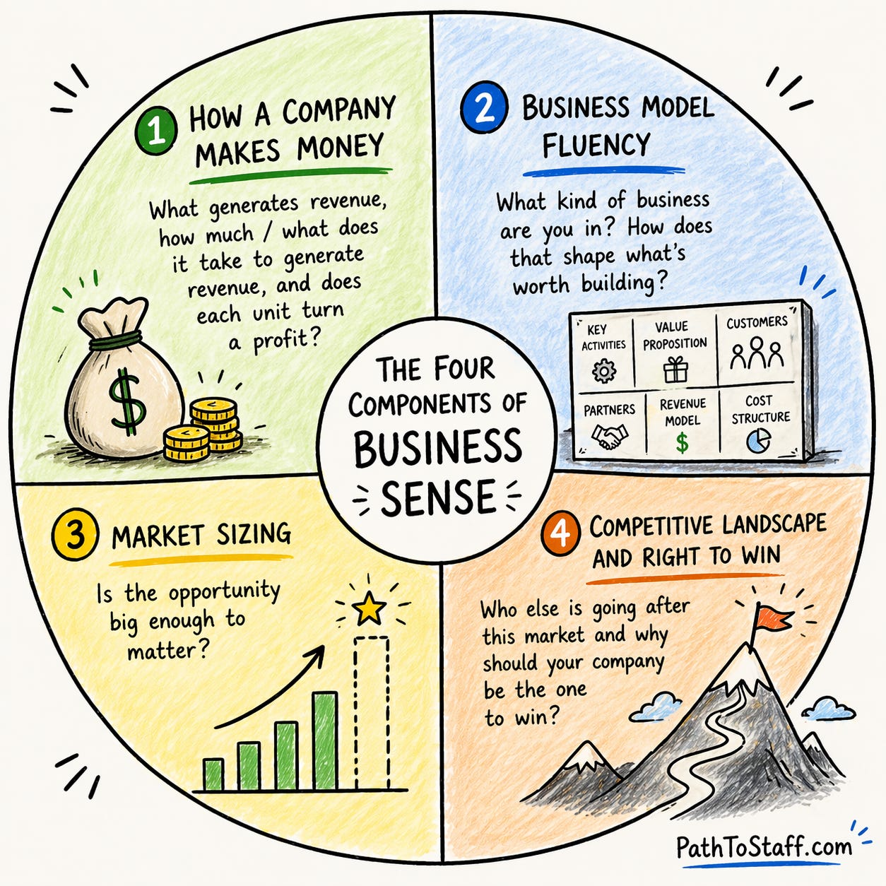 But product sense alone won’t get you to Staff. The engineers I’ve seen get promoted understand something most frameworks skip entirely: Business Sense - how the business actually works.