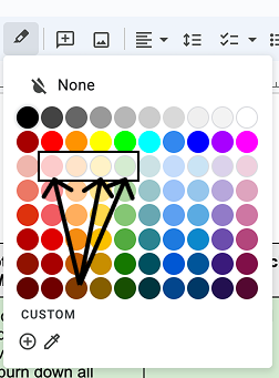 I personally like to use these colors in Google Docs. They’re not too dark, and not too light either. And having three keeps the table simple and focused.